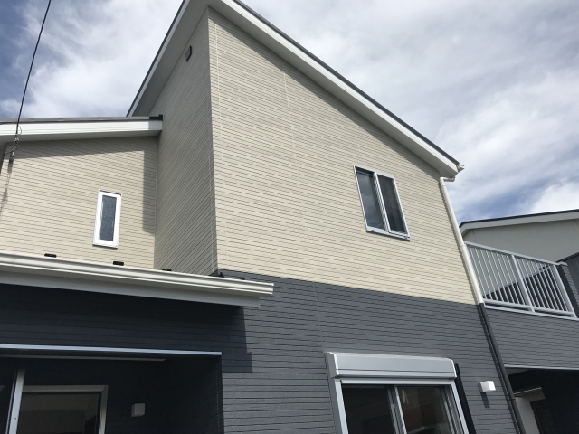 1階と2階の幕板での切り替えやサイディングの切り替え部分で縦に2色に分けて塗装をすると、近隣のお家との調和がとりやすく、個性を出すことができます。